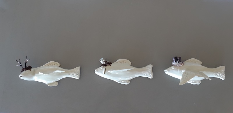 The Associate. Ceramic fish, headdress of black coral and barnacles. 25 cm